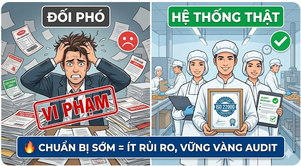 Cách tiếp cận này vừa tuân thủ pháp luật, vừa giúp hệ thống thể hiện rõ hiệu lực khi đánh giá ISO/FSSC.